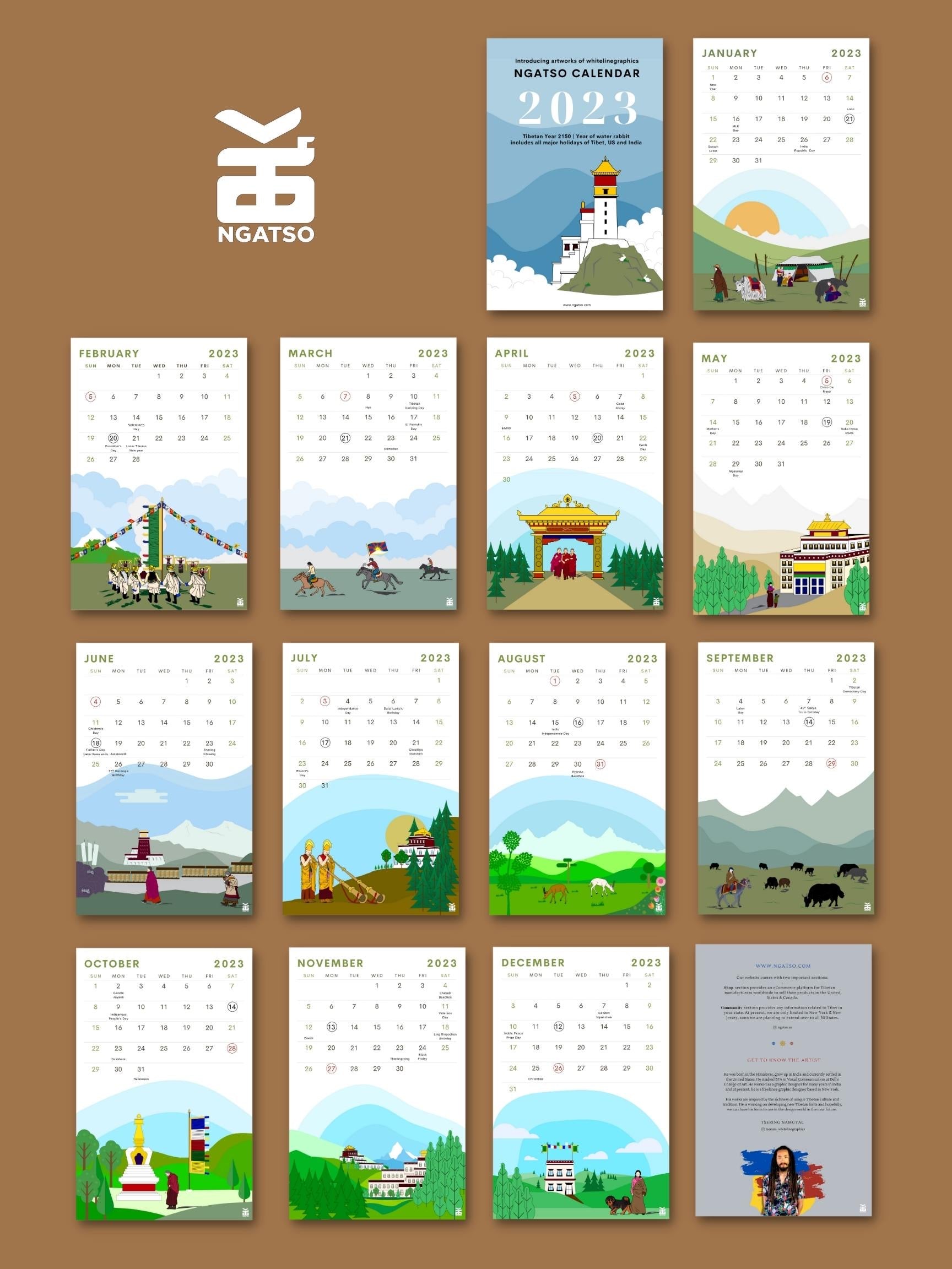 Includes all major holidays of US, Tibet & India.