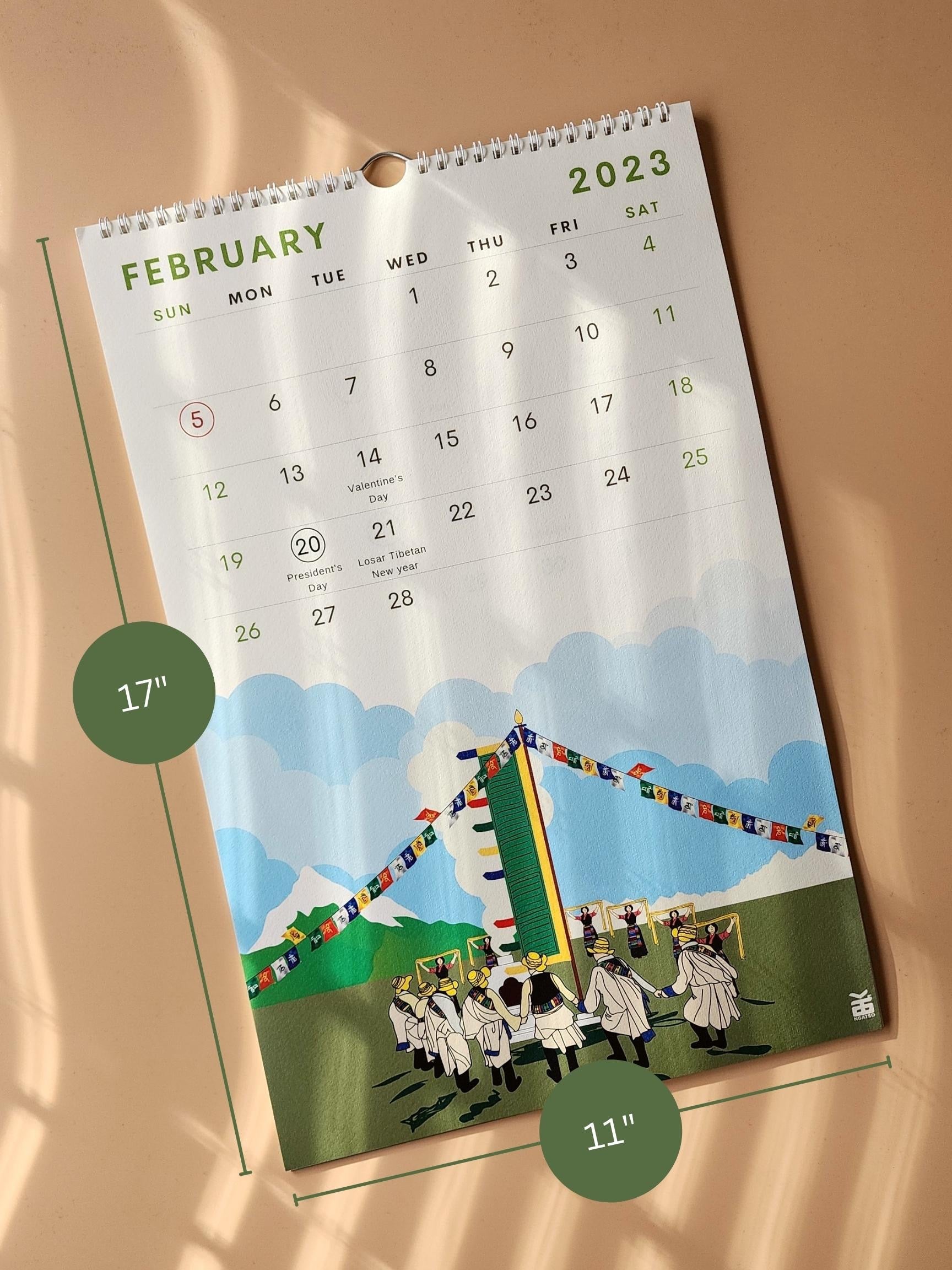 Large English 2023 Tibetan Yearly Digital Calendar. 11x17 inches wall Calendar.